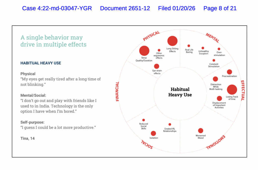 WASHINGTON, DC – Today, The Tech Oversight Project published a new report spotlighting newly unsealed documents in the 2026 social media addiction trials. The documents provide smoking-gun evidence that Meta, Google, Snap, and TikTok all purposefully designed their social media products to addict children and teens with no regard for known harms to their wellbeing, and how that mass youth addiction was core to the companies’ business models. The documents contain internal discussions among company employees, presentations from internal meetings, expert testimony, and evidence of Big Tech coordination with tech-funded groups, including the National Parent Teachers Association (PTA) and Family Online Safety Institute (FOSI), in attempts to control the narrative in response to concerned parents.