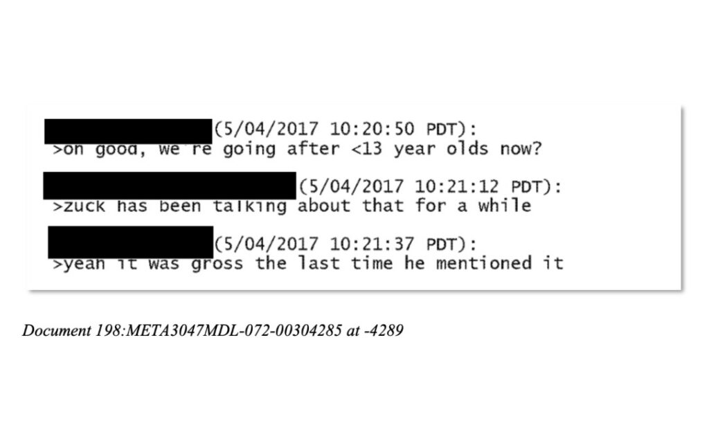 - “Zuck has been talking about (going after <13y/o users) for a while” – Internal Meta employee chats, May 2017
